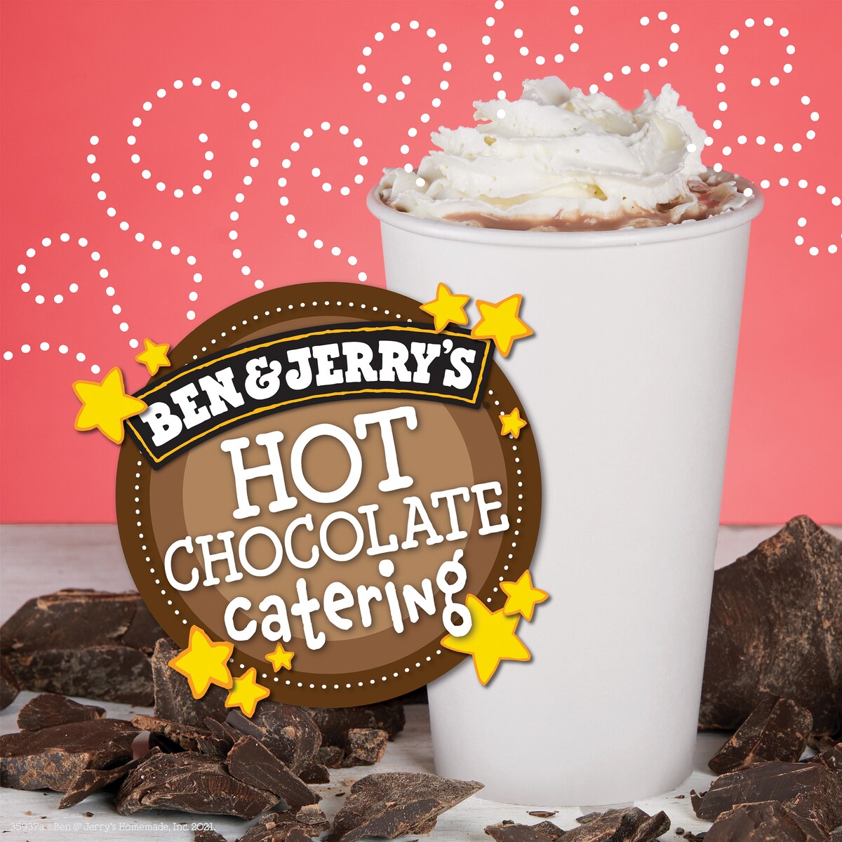 Ben & Jerry's makes hot chocolate! We create a super-premium hot chocolate as only Ben & Jerry's can. Our decadent hot fudge makes an ultra-indulgent hot chocolate base. Using flavored syrups, whipped cream, and a variety of toppings, your guests can customize each warm and cozy cup to their liking!